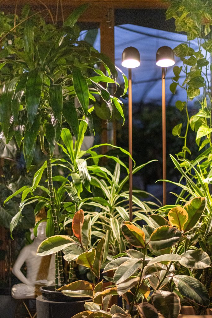 A luz é pensada para o metabolismo das plantas, respeitando os comprimentos de onda que elas mais absorvem. Resultado: folhagens mais verdes, crescimento saudável e menor taxa de perda de plantas em ambientes internos.