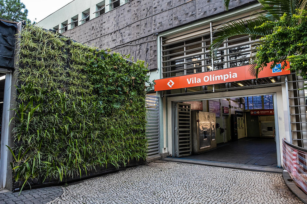O Grupo VG, acaba de implementar um grande jardim vertical na estação Vila Olímpia do trem da CPTM (Companhia Paulista de Trens Metropolitanos). São mais de 1.000 m² de plantas naturais irrigadas com água de reuso filtrada do sistema de esgotos da estação.